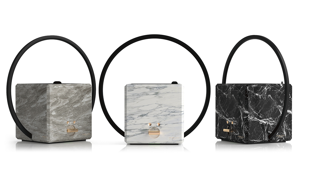 Architectural in form yet intimate in intention, McGregor’s design for Jo Malone transforms scent diffusion into an act of sculptural utility. Hewn from solid marble and wrapped with a precision-milled aluminum ring handle, the object recalls both the purity of a monolith and the portability of a lantern. Its geometric body conceals a dual-cartridge system accessed through a folding front panel — a discreet mechanical gesture that reveals its technical sophistication. Tactile analogue controls replace the digital, offering a human tempo to fragrance curation. At once weighty and nomadic, the diffuser stands as a modern totem of ritual and design: an object that breathes technology through the quiet poetry of material and form.