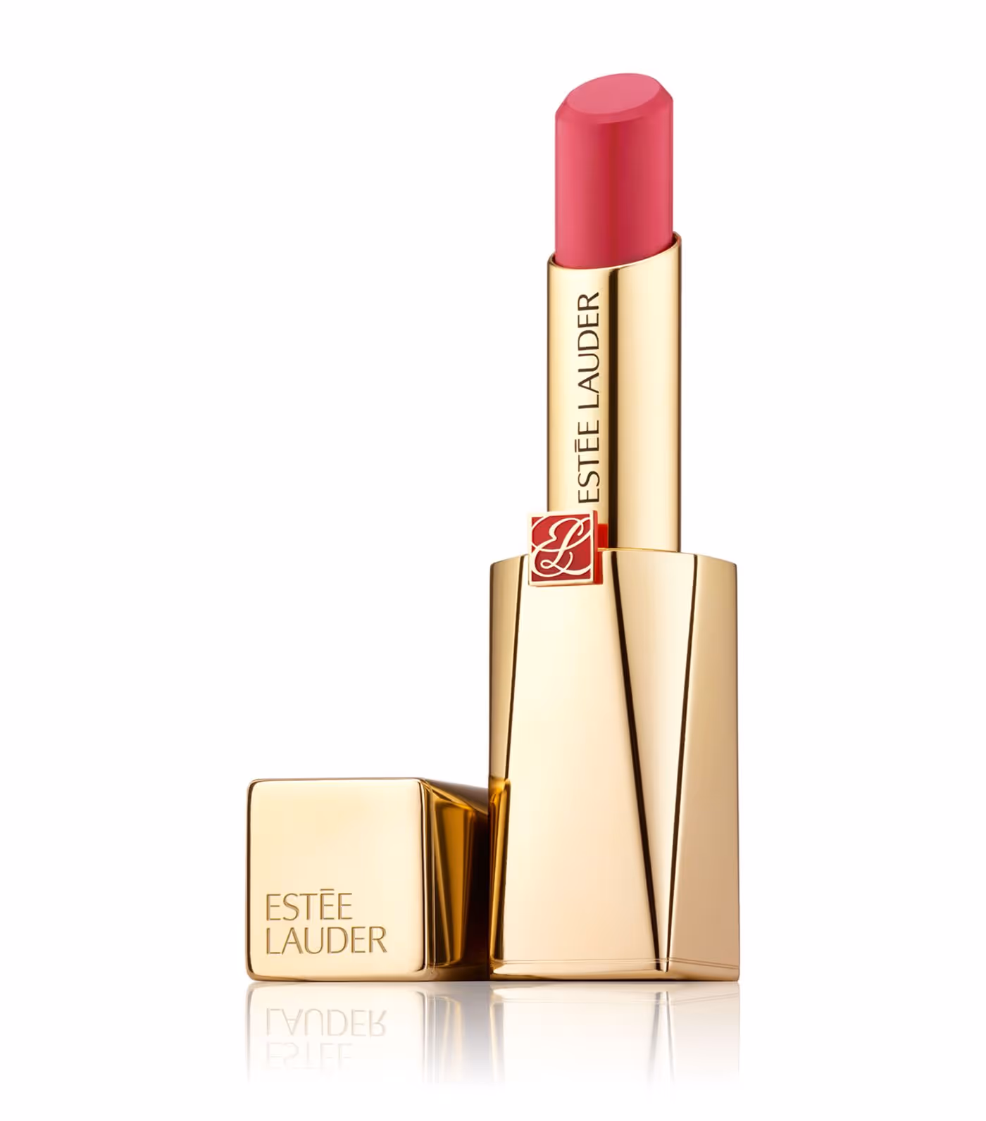 McGregor’s design for the Pure Color Desire lipstick case embodies sculptural luxury in motion. Anchored by a square footprint, the form transitions through a softened octagonal midsection before tapering elegantly back to a square at the top — a subtle architectural evolution that feels both modern and timeless. The silhouette is defined by precise facets that catch and reflect light across its radiant gold finish, celebrating Estée Lauder’s legacy of glamour and craftsmanship. A refined red enamel “EL” plaque graces the waistline, marking the brand’s heritage with quiet confidence, while the top cap bears only a minimal engraved logo — a gesture of restrained sophistication. Designed as a refillable system, the case merges beauty with longevity, reimagining classic luxury for a contemporary audience devoted to both elegance and sustainability.