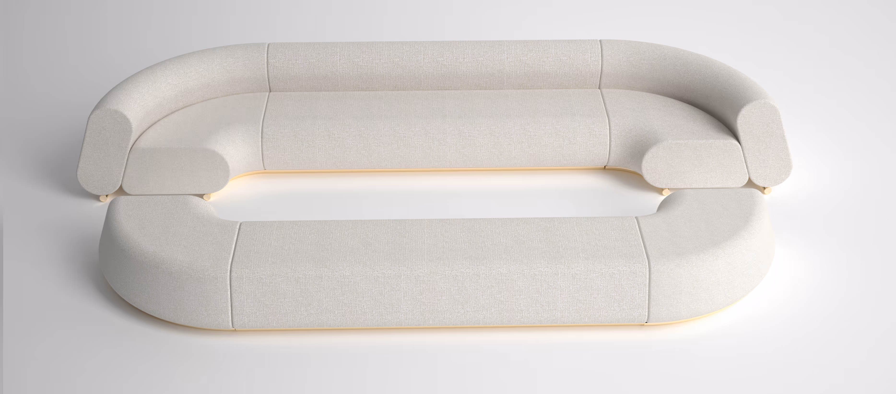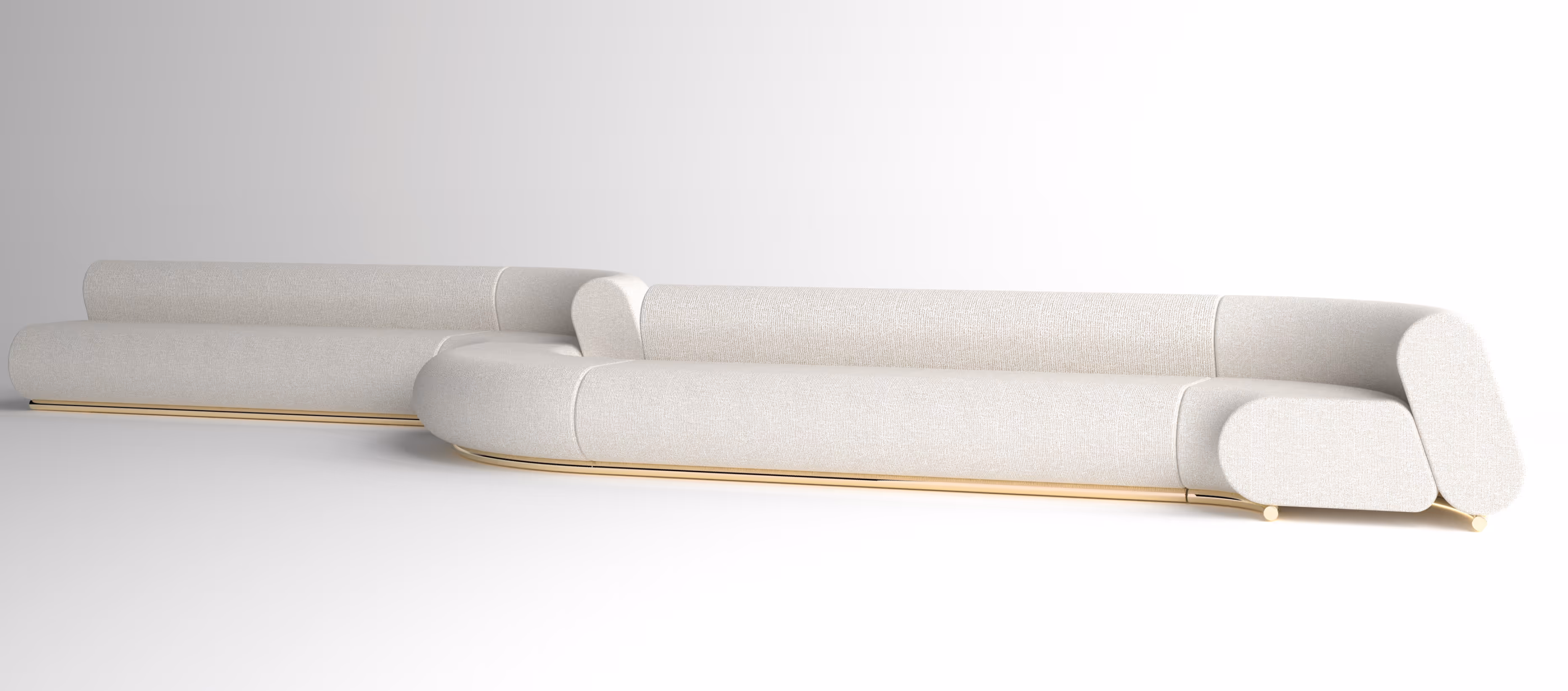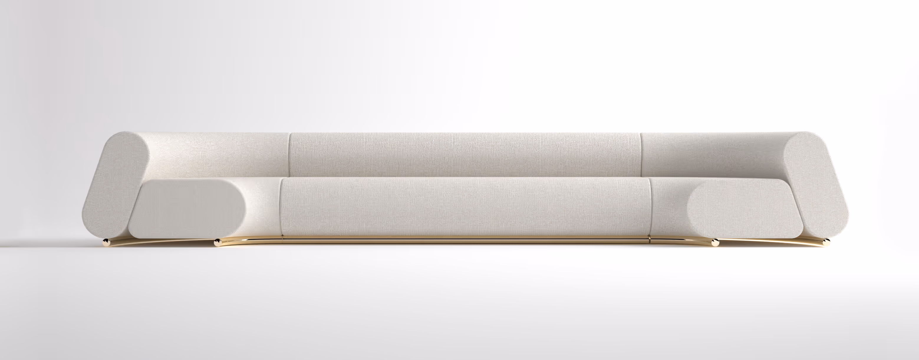 McGregor’s Sofa One is a study in quiet luxury, where geometry and comfort resolve into a single, harmonious statement. The sectional’s signature pill-shaped backrest arcs gently into each adjoining module, allowing the piece to shift effortlessly between linear, curved, and fully enclosed configurations. This sculptural rhythm is lifted by a continuous, delicate gold-plated tube that traces the entire base, giving the sofa a sense of buoyancy while framing its form with a refined metallic line. The contrast between the generous upholstered volumes and the lightness of the plinth creates a balance that feels both architectural and soft. Designed as a commissioned centerpiece, Sofa One embodies McGregor’s talent for distilling complexity into elegant simplicity, offering a modular system that is luxurious, adaptable, and undeniably modern.